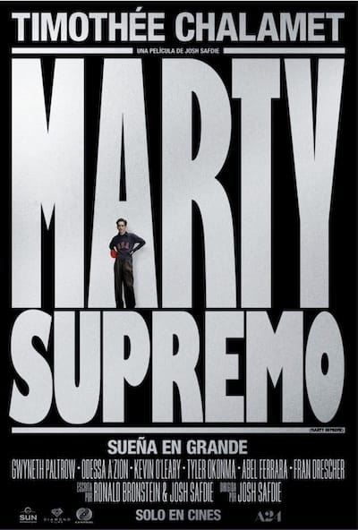 ![]() | Ya está en salas dominicanas esta película ambientada en el Nueva York de los años 1950 y protagonizada por Timothée Chalamet. La historia sigue a Marty Mauser, un vendedor de zapatos empecinado en convertirse en el mejor jugador de tenis de mesa. Marty arriesga todo para alcanzar la grandeza en un deporte que nadie toma en serio. La actuación de Timothée es supuestamente el final y por eso ya lleva un Golden Globe. |