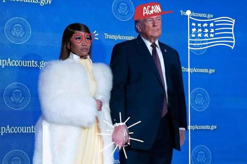 Es Nicki Minaj por lambona. Esta semana apareció en un acto oficial de Trump para promover un programa financiero de su gobierno, con cuentas de ahorro e incentivos. Fue como celebridad invitada, subió al escenario con él, se agarraron de manos y dijo que era “su fan número uno”, y que al que le pique que se rasque.